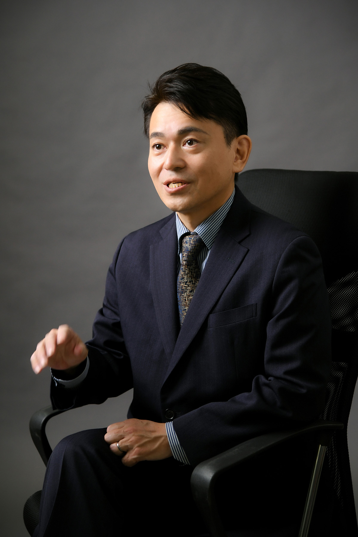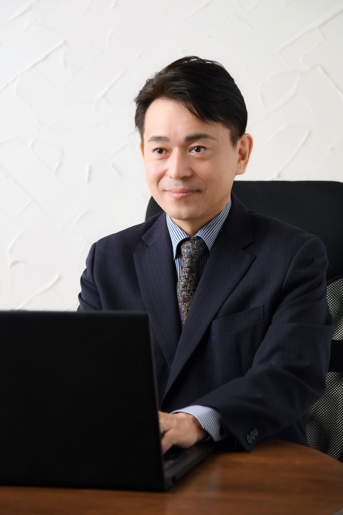 目力の強さや落ち着いた表情で、ビジネスにおける確かな実績と信頼性を表現します。